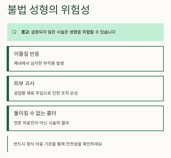 우리가 흔히 접하는 미용 정보들 사이에서 가장 경계해야 할 부분은 바로 검증되지 않은 불법성형이에요.